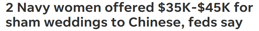 美国司法部门近日对两名美国海军女兵提起联邦起诉,指控她们涉嫌参与婚姻欺诈,帮助中国移民通过假结婚获取绿卡,以换取金钱报酬。这也是今年在杰克逊维尔联邦法院涉及军人的第三起和第四起类似案件。