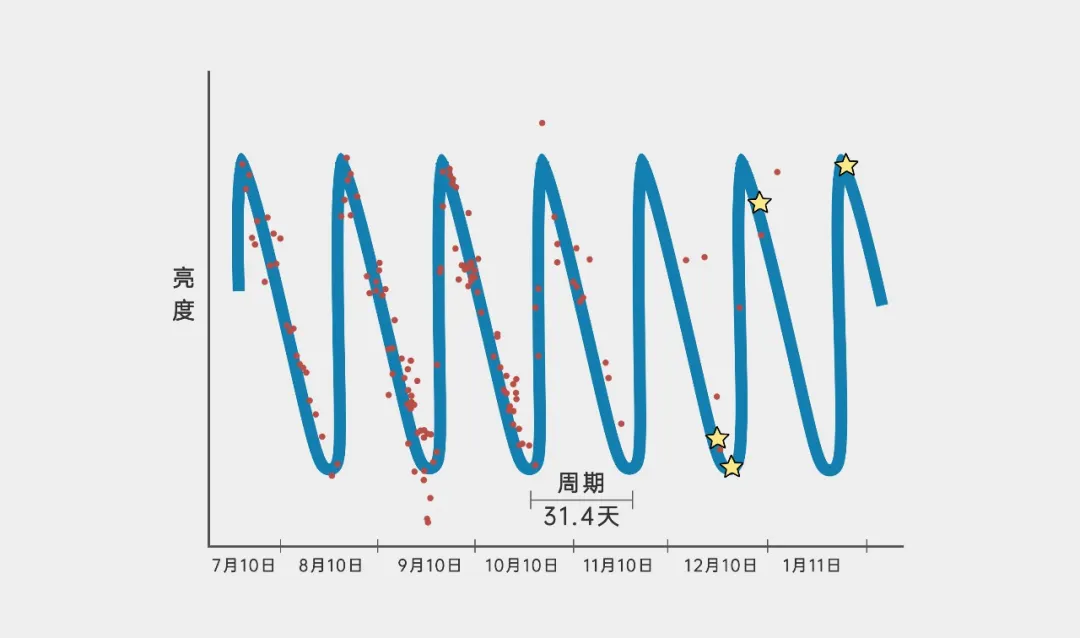 1912年,勒维特发现,造父变星的脉动周期与光度之间存在一条明确的定量关系。通过测量造父变星的脉动周期,人们就可以根据这一关系推算出其内禀亮度,这一规律后来被称为“勒维特定律”。