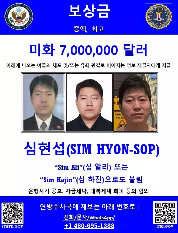 美媒《华尔街日报》引述美国司法部起诉书与国际防制洗钱金融行动工作组织(FATF)资料,美国联邦调查局(FBI)已将沈贤燮的悬赏金额从500万美元提高至700万美元,罪名包括共谋银行诈欺、洗钱以及规避国际对朝鲜制裁等。