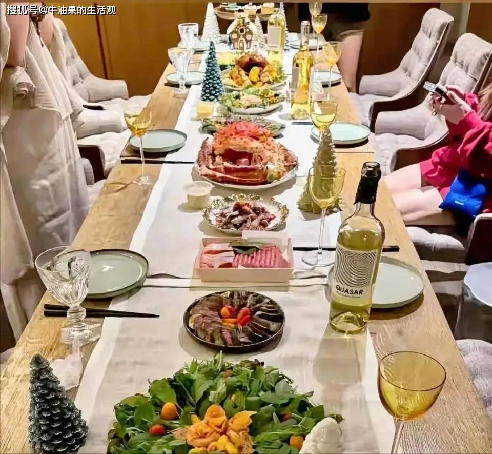 马筱梅铺了白色的桌布,布置了圣诞氛围感的装饰物,开茅台喝小酒,和闺蜜一起庆祝圣诞,圣诞氛围直接拉满。