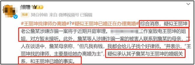 结果不知是不是太急看走眼,结婚不久詹某就被指控诈骗,王丽坤也受到牵连。