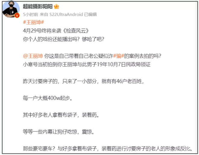 这件案子去年闹得沸沸扬扬,主要还是牵扯到了娱乐圈。王丽坤跟詹某被曝是在2019年领证结婚,当时王丽坤还在跟林更新传绯闻,两人被拍到看房子,还被质疑好事将近。结果转头王丽坤就跟詹某领证,似乎很着急进入婚姻。