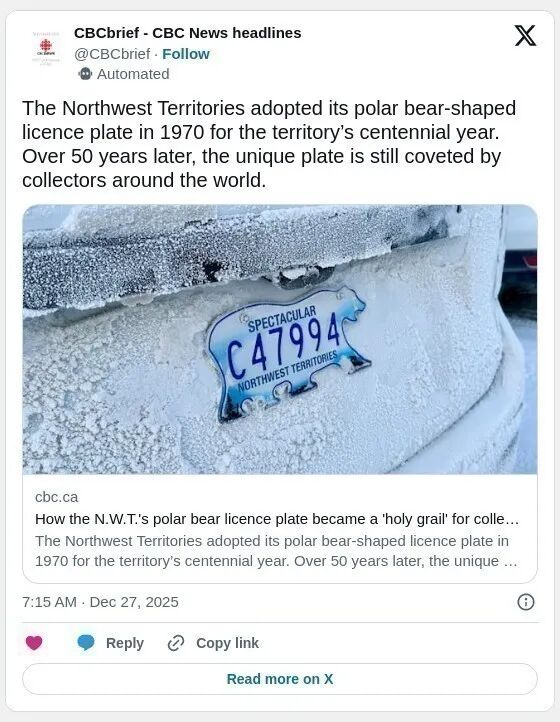 自1970年推出以来,N.W.T.北极熊车牌深受收藏者喜爱。