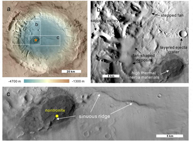 为什么呢?一是他们满足北纬17 °~30°、且高程相对较低(-3000米)的要求;二是火星阿拉伯高地西北部有多种含水矿物分布,还有外流河道、峡谷网和古湖泊这类水成地貌,这意味这些区域很可能曾经广泛存在地表水,这也意味着可能对生命来说也曾宜居。