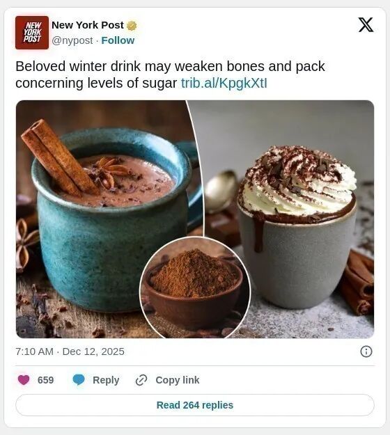 冬季是享受节日温暖饮品的季节,但专家提醒,一种看似舒适的饮料——热巧克力,可能比许多人意识到的更伤骨。