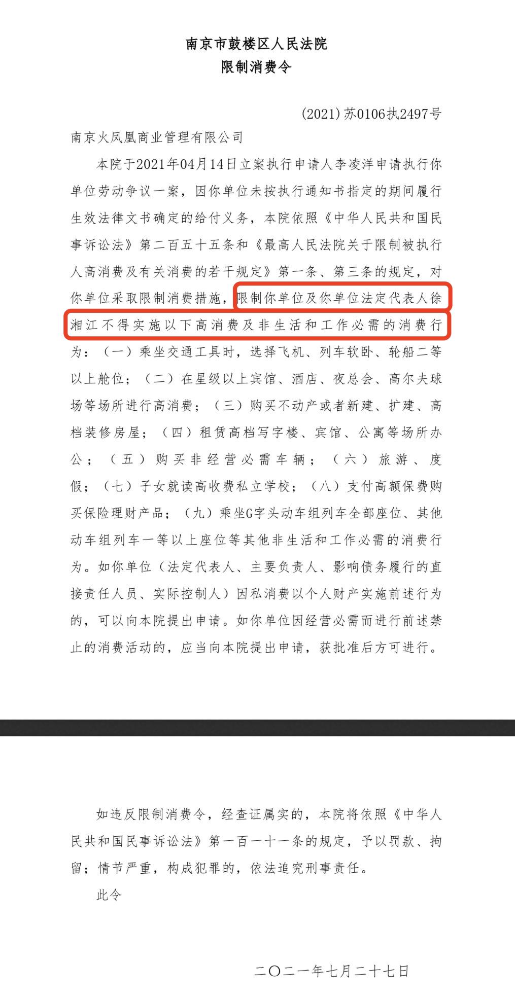 而徐湘江的名下可不止这一家公司,还有一家“南京火凤凰商业管理”公司。