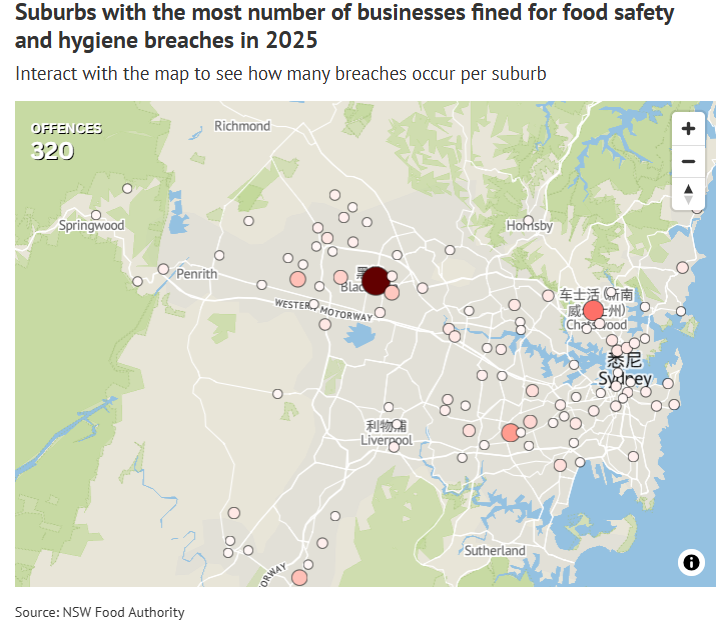新州食品管理局最新的“Name and Shame”名单显示,Blacktown市议会辖区的受罚企业最多,自1月来已有33家餐馆被罚款。
