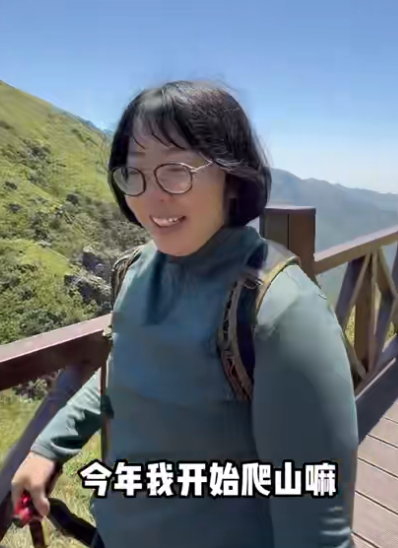 今年她开始爬山,先去武功山,武功山下来瘦了几斤,再去华山,也瘦了几斤。然后去了沙漠徒步,瘦了一些。又去庐山,也瘦了一点,还去了梵净山。中间去了一趟三亚,回来的时候去了戈壁徒步。