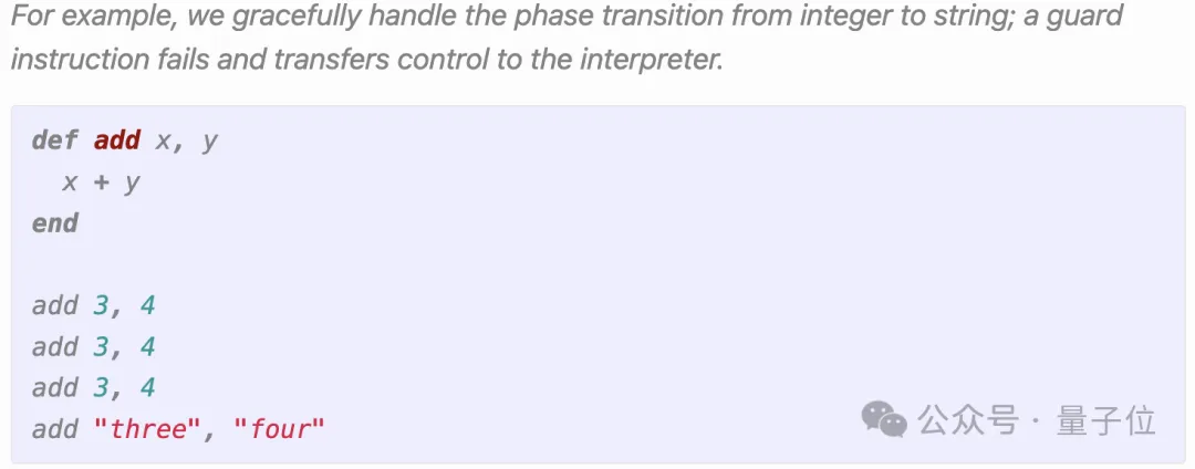 它会基于当前类型稳定的假设生成单一且激进优化的机器码,一旦运行时检测到变量类型不再符合预期(例如整数变为字符串),程序会立即触发侧向退出,终止当前优化代码的执行并安全回退到解释器。