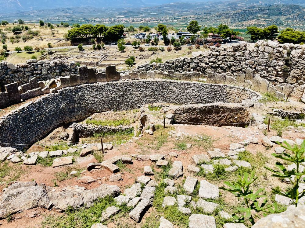 进入狮子门后,最醒目的就是这个圆形的废墟了—陵墓群A(Grave Circle A),整个墓区呈圆形,以双层石砌矮墙围合,建于公元前16世纪。