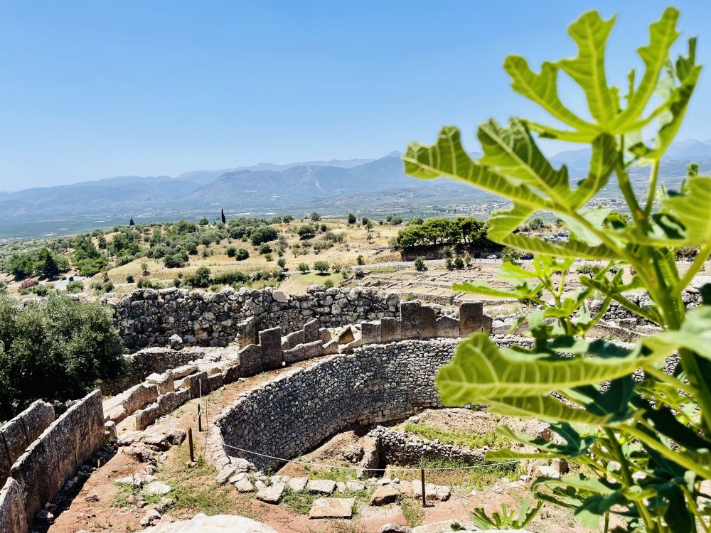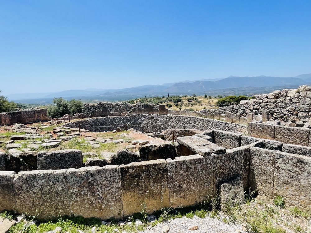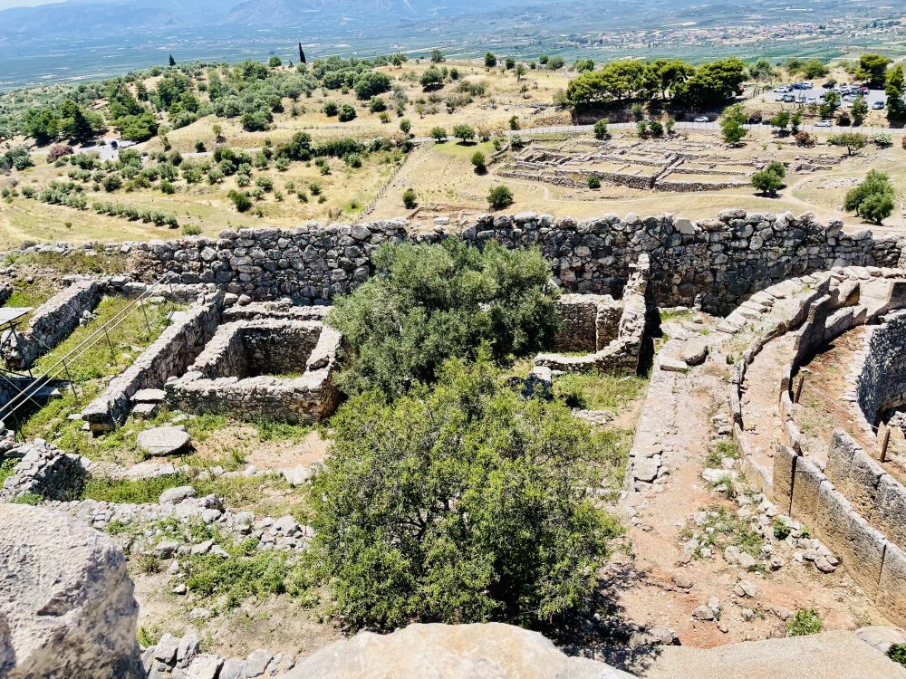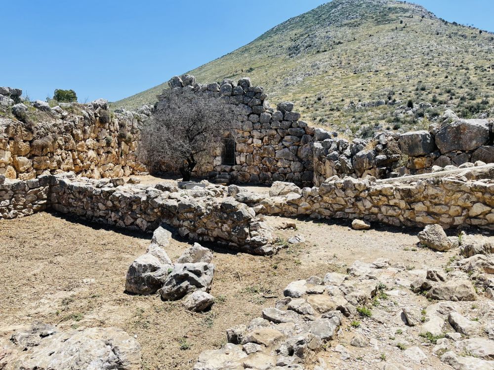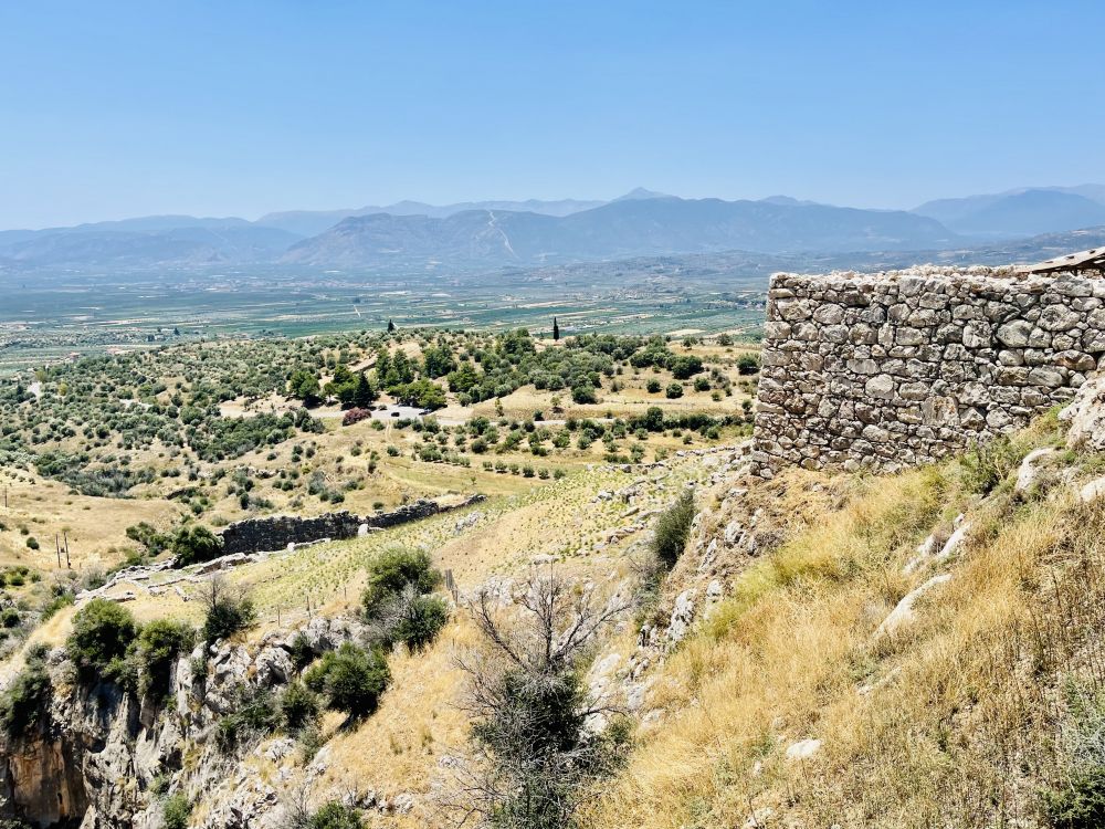 从斯巴达开车2个多小时就到达了迈锡尼,走进遗址,远远地眺望见建在在一座孤立岩石山头上的迈锡尼卫城。《荷马史诗》描述的“遍地黄金”的迈锡尼,就是在这个小山丘上。