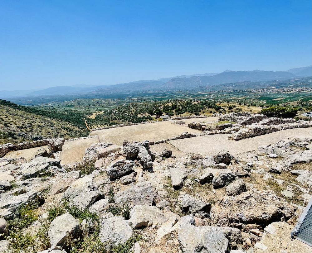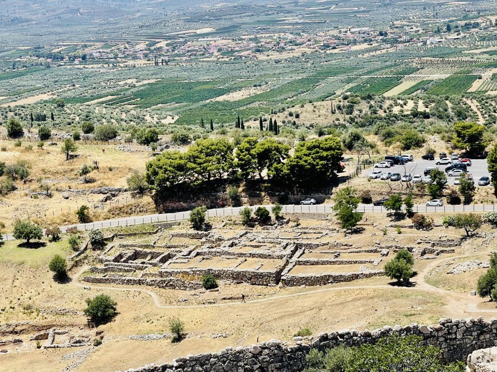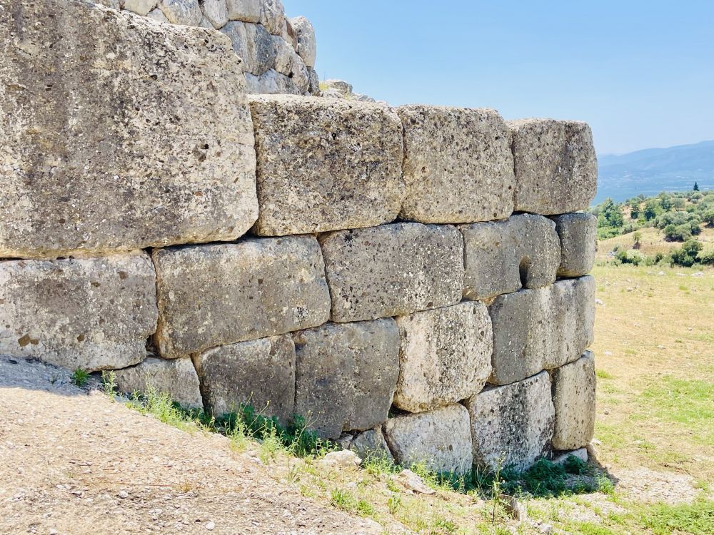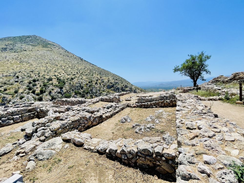 从斯巴达开车2个多小时就到达了迈锡尼,走进遗址,远远地眺望见建在在一座孤立岩石山头上的迈锡尼卫城。《荷马史诗》描述的“遍地黄金”的迈锡尼,就是在这个小山丘上。