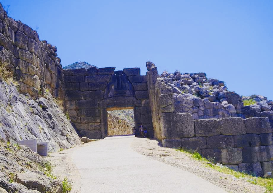 门楣上面的那个三角形的石头边两只相向的狮子,传说它们的头曾是纯黄金做的,早已在战火纷争中遗失。狮子门是欧洲最古老的大型浮雕式古典建筑,代表着迈锡尼文明的权力与精致。