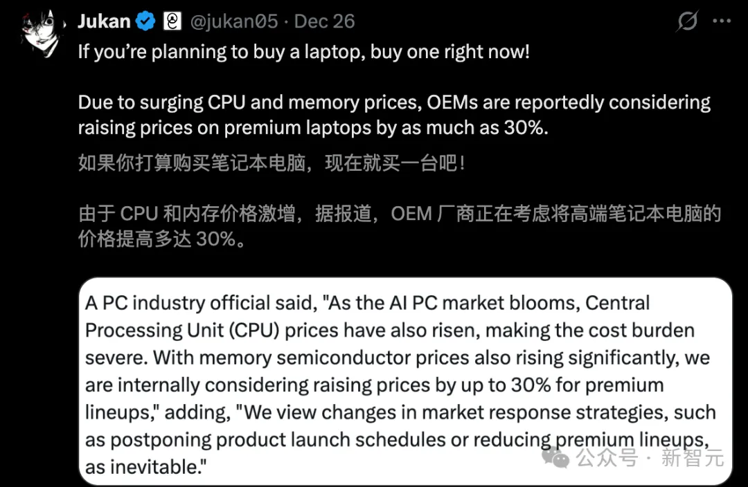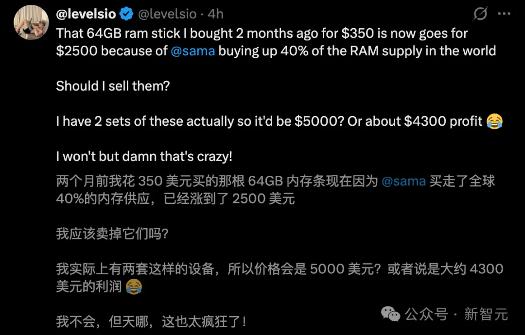 内存不够用,最直接的结果是:全世界每个人,都会被迫为AI买单。