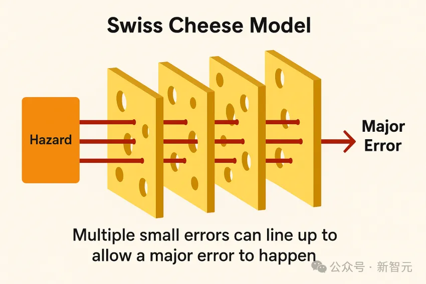 瑞士奶酪模型:单个小漏洞没事,但是一层层叠加,对齐了会出大事