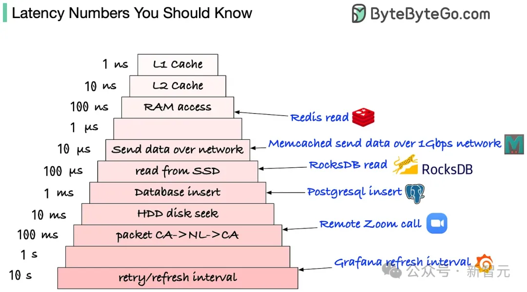 Jeff Dean在清单里列出了一张延迟对照表。一旦把这些数字还原成现实中的时间,很多所谓的设计直觉会当场崩塌。
