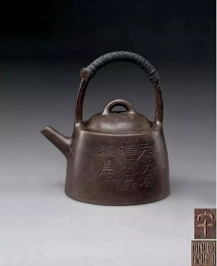 《虚斋名陶录》「陈曼生铭紫砂石铫式提梁壶」,出现在2007年保利秋拍,成交价80.6万。