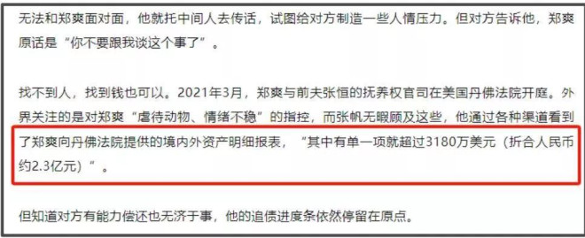 围观到这,也是感慨郑爽在美国越混越差了,还记得她和前夫张恒打官司,被扒出名下资产超2亿,从离婚到争抢孩子抚养权,郑爽还是请了律师,从她的反应看,结果应该符合预期。