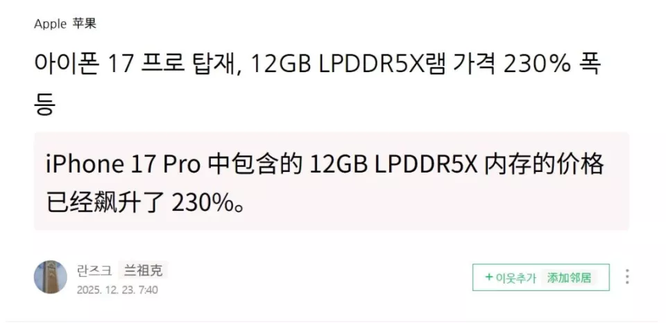 iPhone Pro 用到的12GB 内存,物料成本已经暴涨230%: