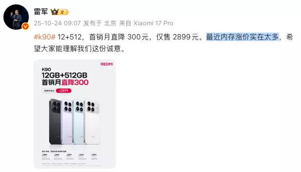 这已经不是小米第一次因为成本“破防”了,此前的 Redmi K90 发布时,起售价就已经悄悄上调。