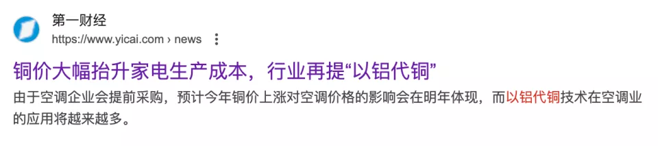 空调厂商首当其冲,已经开始集体研究“铝代铜”的方案——不是因为铝更好,而是因为铜真的太贵了。