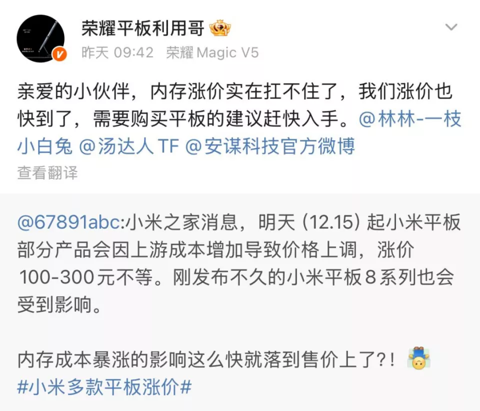 小米平板也开始悄悄调价100-300元,后面还有一批厂商打算跟进: