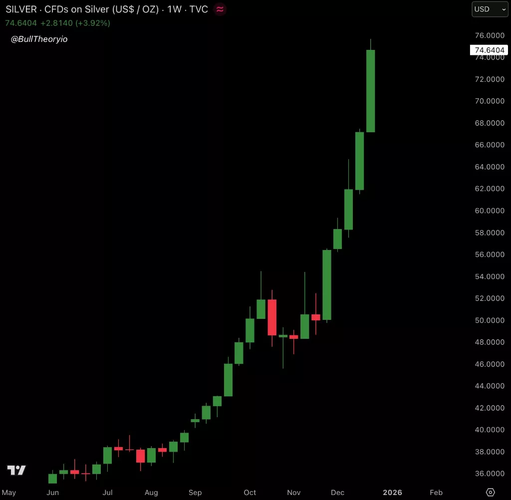 本周白银首次逼近80美元/盎司,迅猛涨势远超黄金。27日,马斯克表达了担忧。直言这对工业发展“不是好事”。