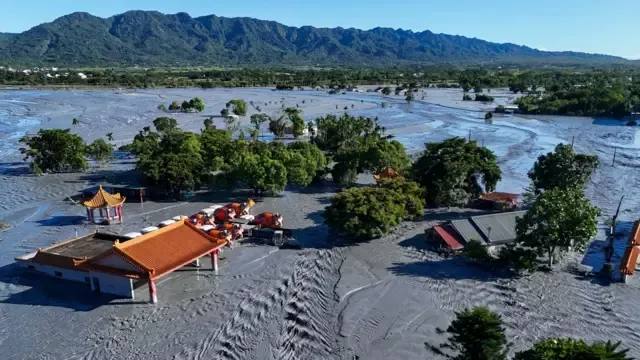 台风桦加沙引发台湾花莲泥石流灾害,光复乡广泛地区被厚厚淤泥覆盖。