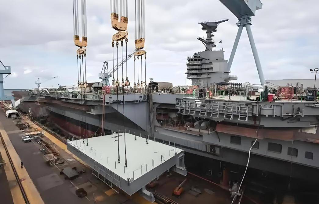 这种“总段加浮箱”的组装模式,使四号舰的建造周期有望控制在五年内,效率达到美国同类项目的三倍。基于当前进度,国外分析认为四号舰可能在2026年底下水,2028年前后服役。