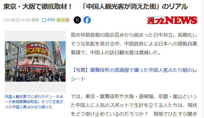 东京的变化更隐蔽,却更具指向性。银座一家专做中国团体游的旅行社确认,11月中旬后订单陆续取消,12月开始,新的预约完全为零。歌舞伎町的一家居酒屋老板算过账:过去中国客人是主力,客单价在5000日元左右;现在更多是欧洲游客,客单价只有2000日元,点单更克制,翻台更快,却难以弥补差额。
