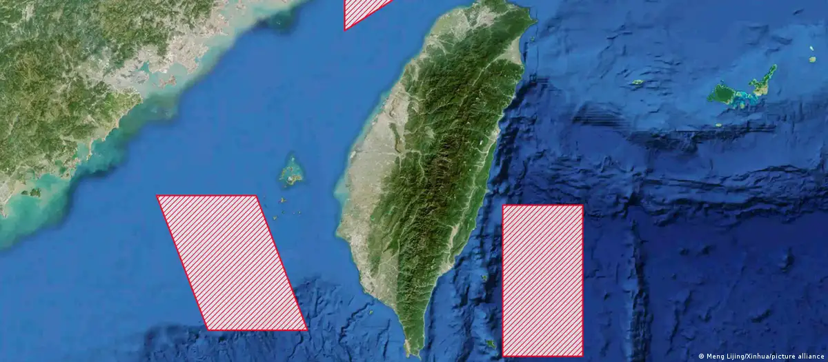 跟过去几次围台军演相比,“正义使命”演习范圍距离台湾更近。图像来源: Meng Lijing/Xinhua/picture alliance