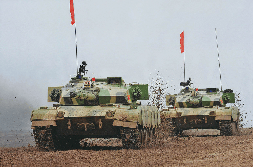这个体系还不止于坦克。04A型步兵战车伴随步兵突击,红箭-10远程反坦克导弹提供火力支援,122毫米火箭炮和155毫米卡车炮进行战场火力覆盖,侦察无人机和攻击直升机提供情报和空中打击。