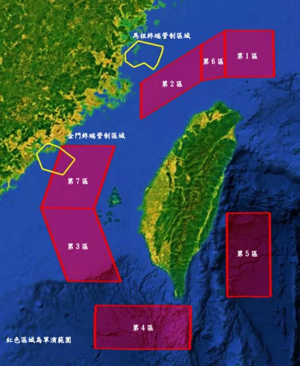 民航局列出的演习影响范围。(图/民航局)
