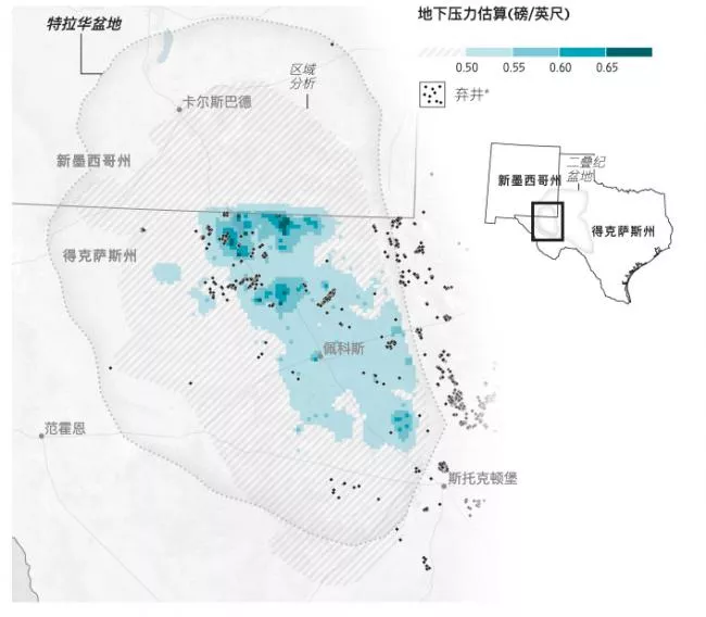 来源:得克萨斯大学奥斯汀分校经济地质局的Jun Ge和Katie Smye(压力);得克萨斯州铁路委员会(废弃油井)