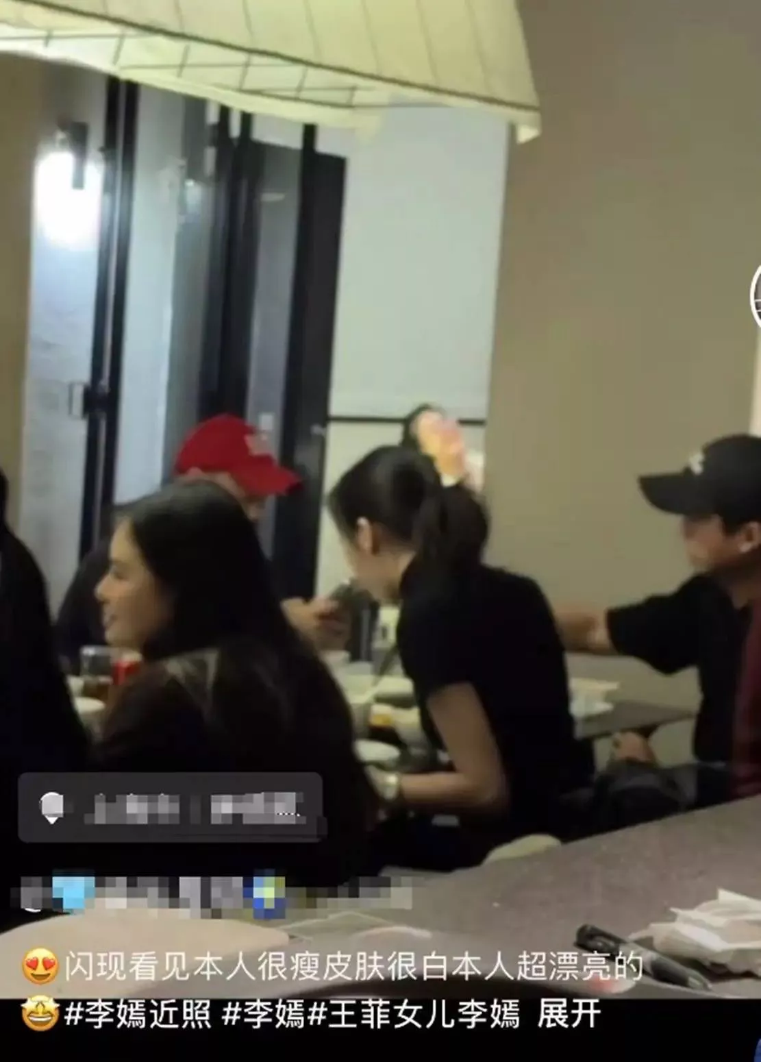 当天餐厅里人还蛮多的,李嫣只有背影入镜,她穿一件黑色高领短袖,扎着低矮的马尾,这模样像极了年轻时候的王菲。