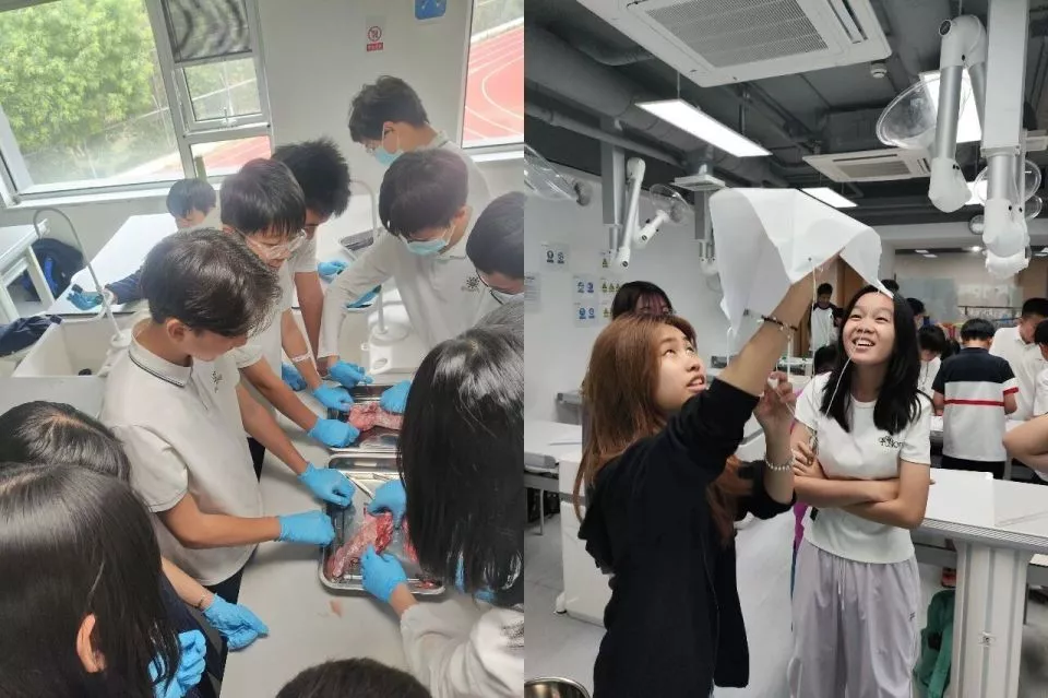■ Bill老师带领学生动手做解剖实验(左),与孩子们一起制作降落伞,验证哪组出品最优秀(右)