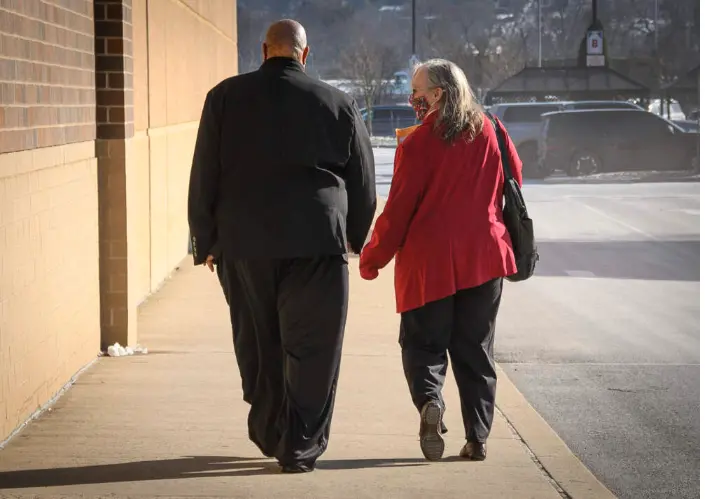 ▲洛奇夫妇听取判决后牵手离开