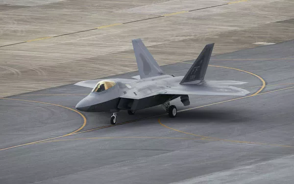 ▲美军F-22猛禽匿踪战机在日本冲绳嘉手纳空军基地跑道滑行。(图/达志影像/美联社)