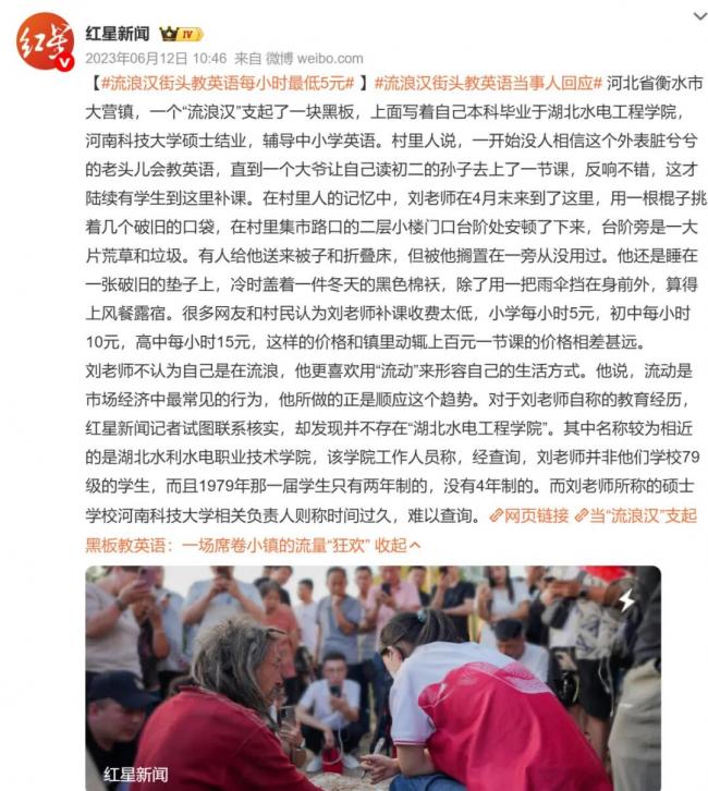 比如2023年,有位流浪汉穷困潦倒在衡水下面的乡村里,说“我上过大学,我能教英语!”