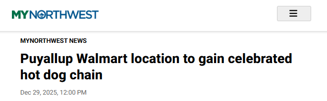 本周,Wienerschnitzel在一份新闻稿中宣布,将在位于皮尔斯县皮阿拉普(Puyallup)31st Avenue S.E. 10号的沃尔玛超市内开设新店。这家门店预计将在未来几周内开业,这也将是全美沃尔玛超市内开设的第二家Wienerschnitzel门店。