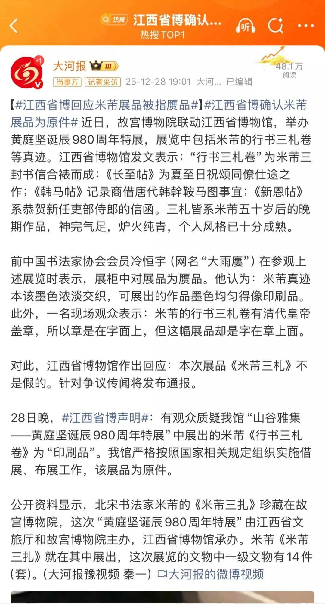 这一手太极打得可谓炉火纯青。意思很明确:这画确实是故宫借给我的那个物理实体,我们没有在运输途中调包,也没有拿复印件充数。至于这东西是不是米芾亲笔写的?那你得去问故宫。故宫说是真迹,那就是真迹。我们只负责“搬运”,不负责“保真”。