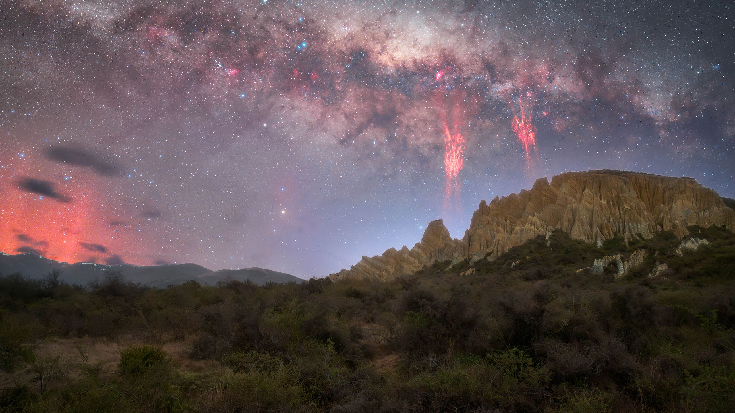 10月,摄影师们在新西兰上空成功捕捉到罕见的“红色精灵”现象。这种现象由大气中爆发的电能向上释放所致,产生奇特的锯齿状光痕,仅持续数毫秒便消逝无踪。图片来源:Dan Zafra/Capture the Atlas