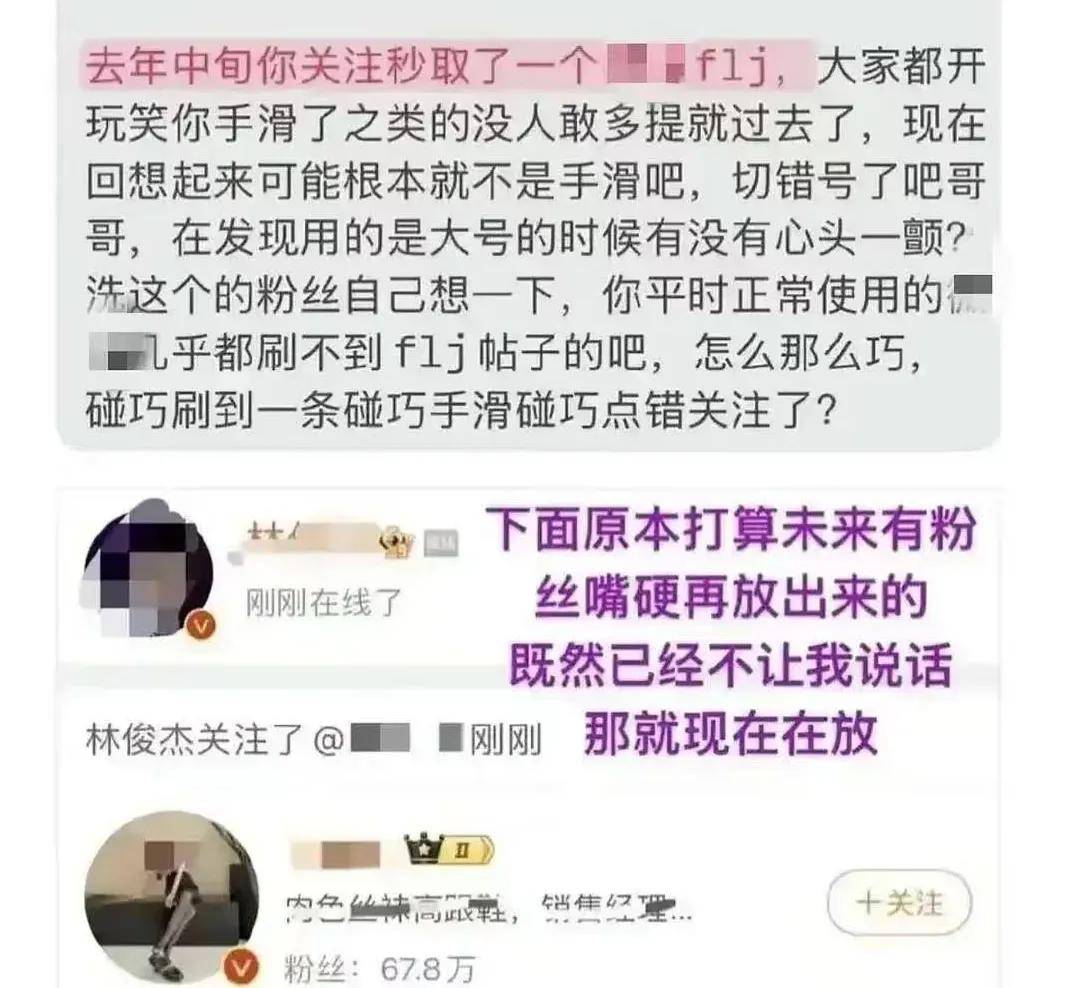 在林俊杰官宣后,失望的粉丝们又开始新一轮的爆料了,有粉丝晒出林俊杰关注颜色博主的截图,感慨他当时并不是手滑意外关注,而是切错大小号了。再加上粉丝疯狂晒七七性感清凉照的行为,可见林俊杰的审美就这样。