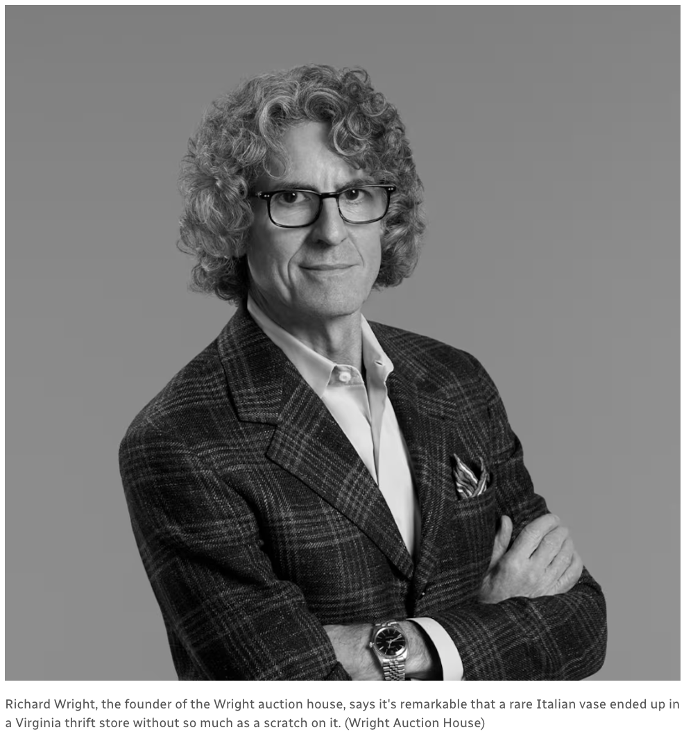 Richard Wright 在接受 CBC 采访时表示,更令人难以置信的是,这样一件珍贵的玻璃艺术品,从 1940 年代的意大利一路流转,进入二手店 Goodwill 后竟然没有出现任何缺口或裂痕。他直言,如果花瓶哪怕有一个小磕碰,价值都会大幅下降,可能不足一万美元。