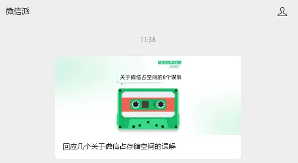 12月29日,微信官方公众号“微信派”发布文章,回应关于“微信占存储空间”的说法,以下为全文: