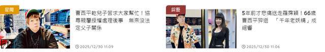 曹西平生前多次在社交网上透露母亲的离世是他一辈子的遗憾,因为母亲生前总会细心替他剪报、收藏属于他的每一则新闻,最让其无法释怀的是,母子俩没能见到最后一面,甚至连一句道别的话语都没有。