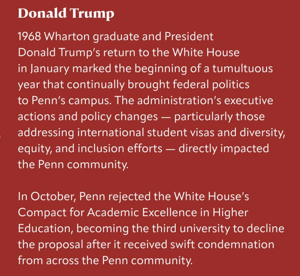 其政府的行政行动与政策变化——特别是涉及国际学生签证以及多样性、公平性与包容性举措的部分——直接影响了宾大社区。