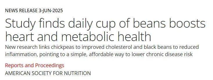 今年6月在美国营养学会年度会议上,公布的一项最新研究显示,每天多吃点豆类,可有效改善血脂、减轻身体炎症,同时对心脏以及身体代谢等都有好处。