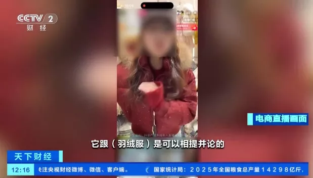 线上的电商直播间称“石墨烯云绒棉可以和羽绒服相提并论”。(天下财经)