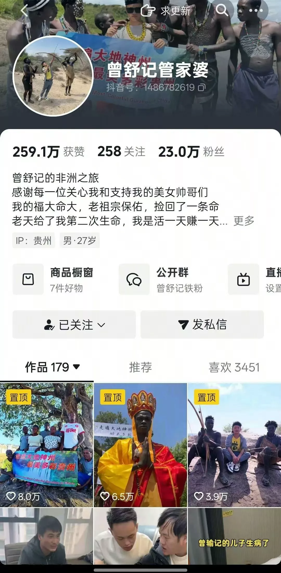 受害人曾先生的社交帐号。(抖音截图)
